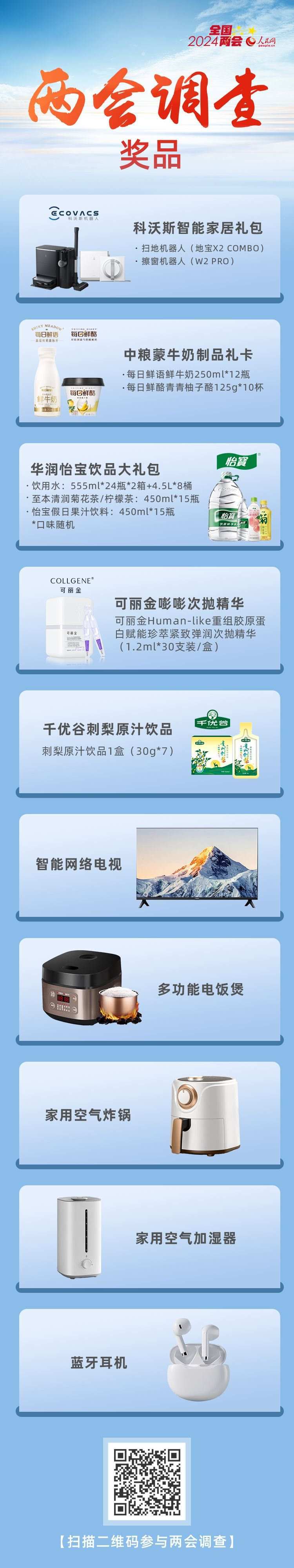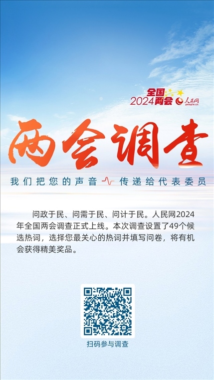 為感謝網(wǎng)友對(duì)全國(guó)兩會(huì)調(diào)查的支持,參與人民網(wǎng)2024年全國(guó)兩會(huì)調(diào)查還有機(jī)會(huì)抽取精美獎(jiǎng)品。