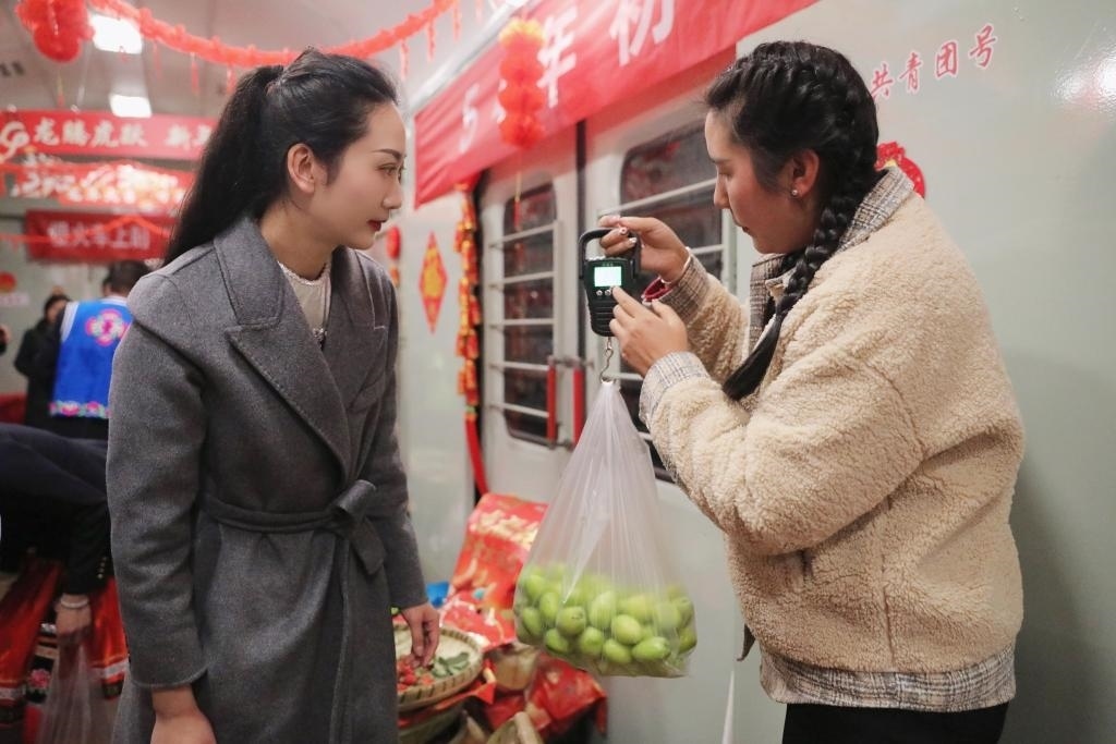 云南昆明至元謀西“慢火車(chē)”上的年貨街。(中國(guó)鐵路昆明局集團(tuán)有限公司供圖)