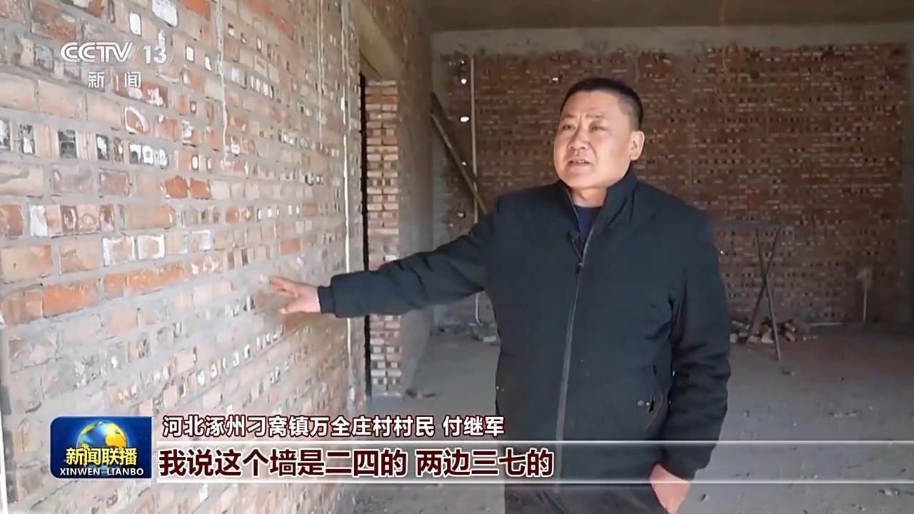 河北涿州刁窩鎮(zhèn)萬全莊村村民 付繼軍:去年,總書記來那會(huì)兒這個(gè)房子剛壘墻壘到這個(gè)位置,總書記還這么摸了摸,說這活兒干得挺好,問了問我這是三七墻呀二四墻呀,我說這個(gè)墻是二四的,兩邊三七的,看著總書記特別溫暖,那會(huì)兒真是掉眼淚。準(zhǔn)備抓緊裝修,盡快搬進(jìn)來,村里邊現(xiàn)在大家也都干勁挺大的,盡最大努力,把日子過好。