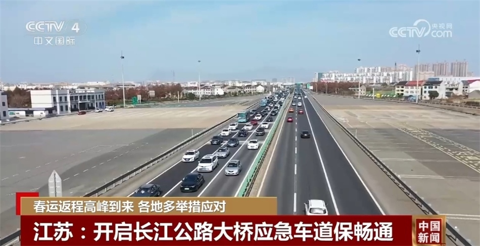 14日,江蘇重要的過江通道江陰長江公路大橋就迎來返程車流的第一個(gè)高峰,當(dāng)天車流量突破13.6萬輛。2月15日,江陰長江公路大橋的通行量繼續(xù)保持高位運(yùn)行,為保證大橋及周邊高速公路的通暢,靖江市交警、路政、道路等聯(lián)合采取應(yīng)急措施,開啟橋區(qū)的應(yīng)急車道,提升大橋的通行能力,并在大流量緩行路段駐點(diǎn)布防,確保道路上發(fā)生突發(fā)事件時(shí)能及時(shí)進(jìn)行處置。