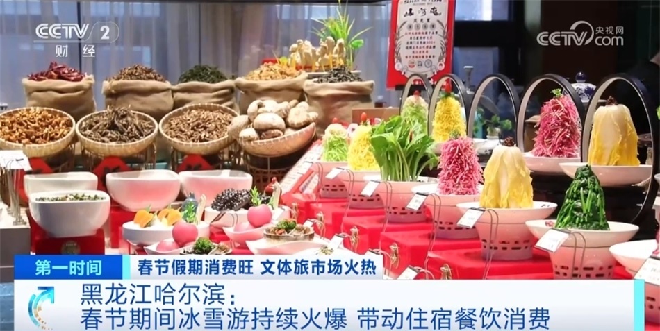 冰雪旅游的火爆也帶動了當?shù)夭惋?、住宿等相關產(chǎn)業(yè)的消費增長,哈爾濱市商務局對部分重點行業(yè)調(diào)查數(shù)據(jù)顯示,2月10日至13日,春節(jié)哈爾濱市住宿行業(yè)營業(yè)額較去年同期增長22.90%,餐飲行業(yè)企業(yè)營業(yè)額較去年同期增長51.55%。