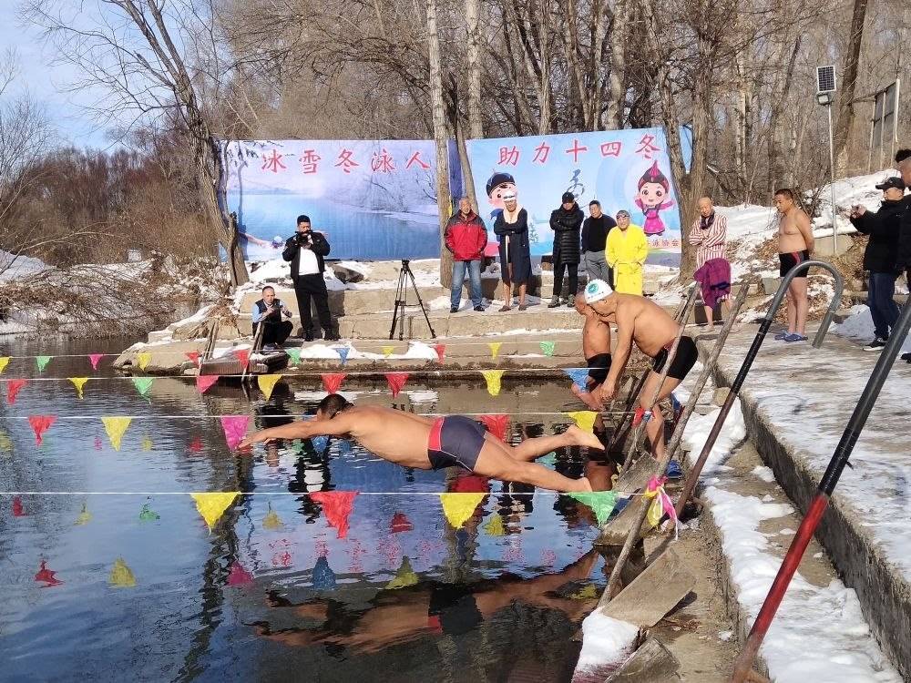 冬天的呼倫貝爾扎蘭屯市,街上行人裹著厚厚的羽絨服疾行而過,不愿在寒冷的室外多做停留。然而在郊外的雅魯河畔,一群僅著泳衣的冬泳愛好者卻不畏嚴(yán)寒,做著下水前的熱身活動。