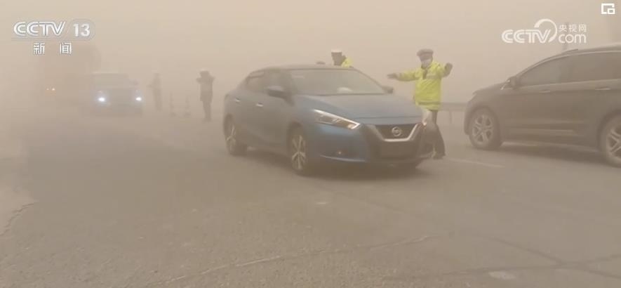 除了風吹雪,新疆部分地區(qū)還出現(xiàn)了沙塵暴天氣。在新疆克州烏恰縣,17日,當?shù)赝话l(fā)沙塵暴,在烏恰縣國道314部分路段能見度不足100米,一名交警一邊手扶車身,一邊努力睜眼辨別路況,在8級狂風沙塵中引導車輛駛出危險區(qū)域。據(jù)了解,此次沙塵天氣一直持續(xù)至2月18日中午12時,當?shù)亟痪簿戎焕к囕v一百多輛。