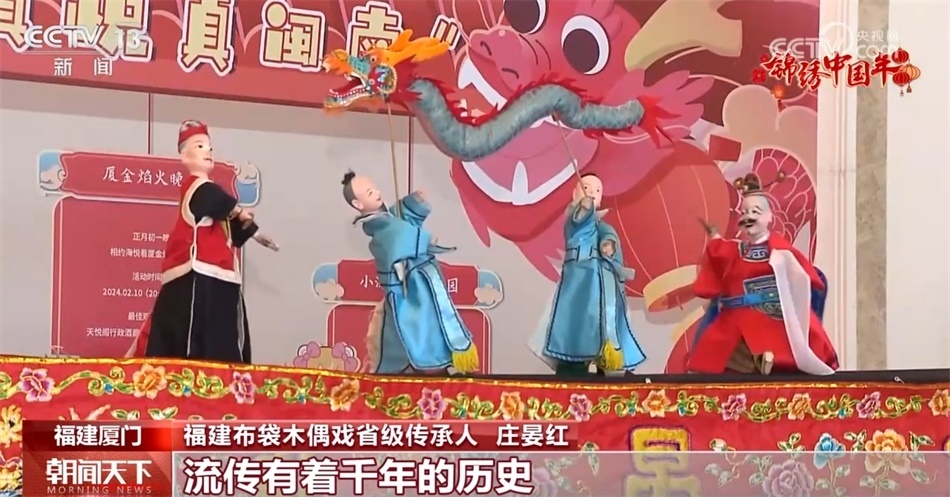 同樣在春節(jié)期間受到游客喜愛的還有廈門的非遺項(xiàng)目布袋木偶。莊晏紅是布袋木偶戲演出團(tuán)隊(duì)的一員,她告訴我們,春節(jié)期間,團(tuán)隊(duì)會有20多場的演出,忙得熱火朝天,在景區(qū)、酒店、藝術(shù)館為游客展示非遺魅力。