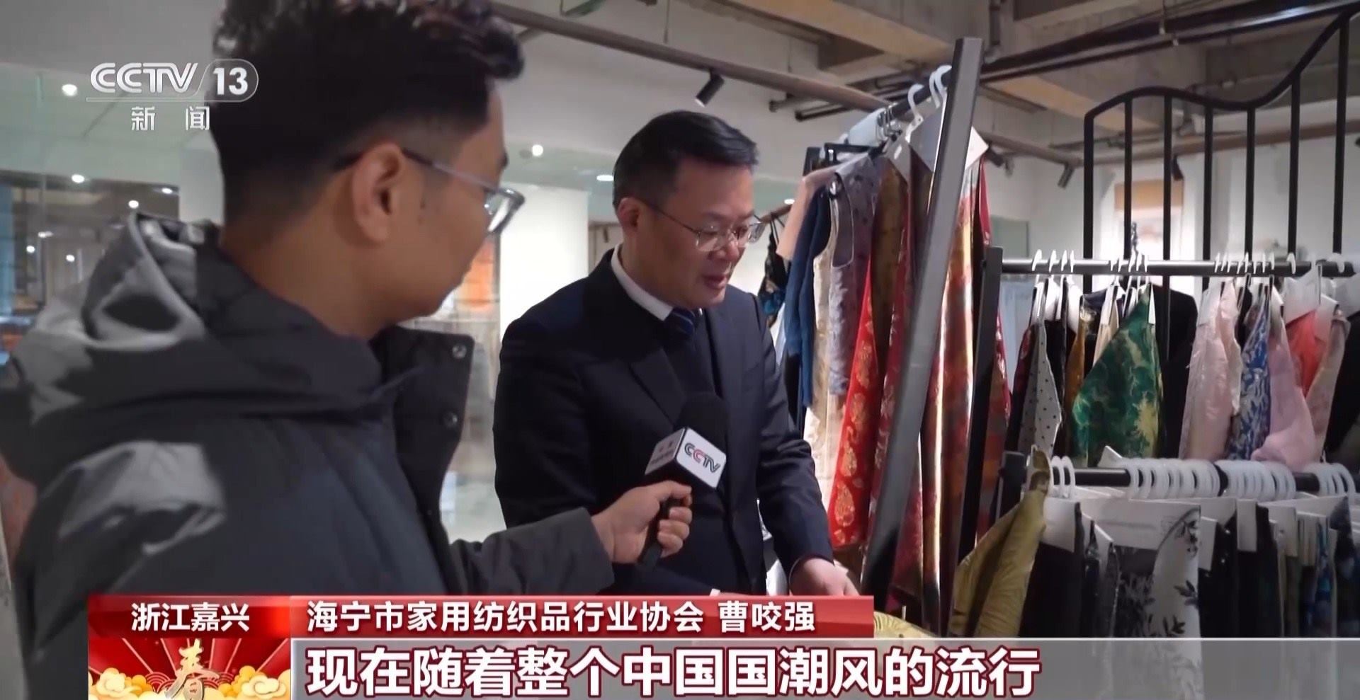 海寧市家用紡織品行業(yè)協(xié)會 曹咬強:這款面料主要是供應(yīng)在意大利市場上,這個色系的面料主要供應(yīng)在美國市場上?,F(xiàn)在隨著整個中國國潮風(fēng)的流行,特別是在東南亞市場,他們每次下訂單都是60萬米、80萬米。