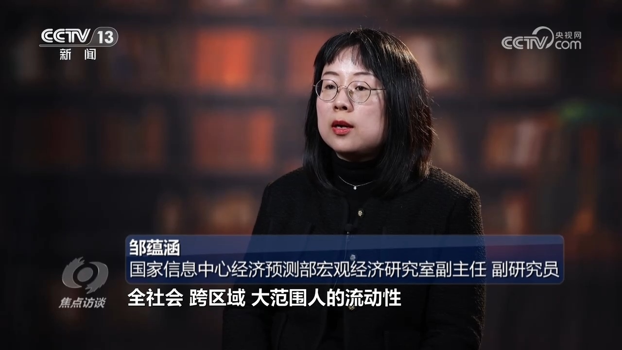 國家信息中心經(jīng)濟(jì)預(yù)測部宏觀經(jīng)濟(jì)研究室副主任、副研究員鄒蘊(yùn)涵:“今年春節(jié)的消費(fèi)可以總結(jié)為兩個(gè)字,一個(gè)是熱,一個(gè)是新。熱度體現(xiàn)在今年春節(jié)全社會(huì)跨區(qū)域大范圍人的流動(dòng)性較以往明顯增強(qiáng),整個(gè)社會(huì)動(dòng)起來了之后,推動(dòng)消費(fèi)市場的熱度活力。消費(fèi)領(lǐng)域的創(chuàng)新是一個(gè)非常突出的新的增長點(diǎn),這種創(chuàng)新不僅表現(xiàn)在傳統(tǒng)商品消費(fèi)的創(chuàng)新,服務(wù)消費(fèi)的業(yè)態(tài)模式創(chuàng)新,激發(fā)消費(fèi)意愿,推動(dòng)消費(fèi)市場潛力釋放具有非常好的作用?!? ?