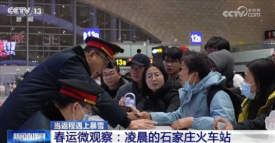 央視網消息:本輪大范圍降雪造成了不少旅客列車降速運行,一些旅客的出行計劃受到影響。在京廣鐵路線上的重要火車站石家莊火車站,從2月20日晚上開始,由于旅客列車大面積晚點,不少旅客只能在車站等候乘車?!洞哼\微觀察》一起跟隨記者,走進凌晨的石家莊火車站。