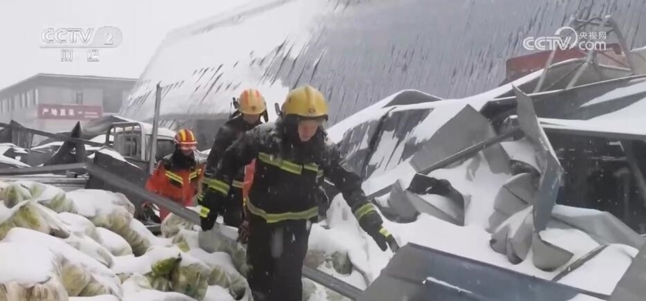 了解現(xiàn)場情況后,消防救援人員組成5個小組,對坍塌市場進行全方位搜尋。在搜救過程中,另一個大棚突然發(fā)生坍塌。經(jīng)過多輪搜尋排查,未發(fā)現(xiàn)人員被困。隨后,為消除隱患,消防救援人員利用水槍對未坍塌的兩個鋼架大棚進行積雪清除作業(yè)。