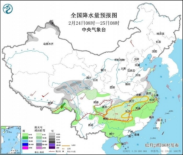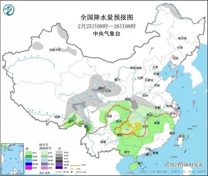 央視網(wǎng)消息:中央氣象臺網(wǎng)站2月24日消息,昨日,河南、安徽、四川等地部分地區(qū)出現(xiàn)了明顯的雨雪天氣,湖北、湖南及貴州部分地區(qū)出現(xiàn)凍雨。近期我國大部地區(qū)氣溫偏低,南方部分地區(qū)有雨雪冰凍天氣,公眾需持續(xù)做好防寒保暖,外出警惕雨雪冰凍天氣造成的路面濕滑,注意交通安全。