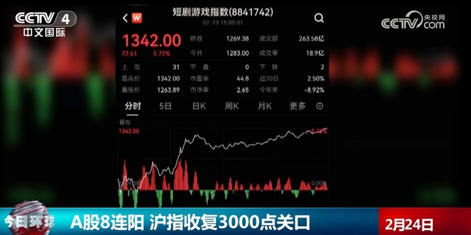 A股8連陽 滬指收復(fù)3000點(diǎn)關(guān)口
