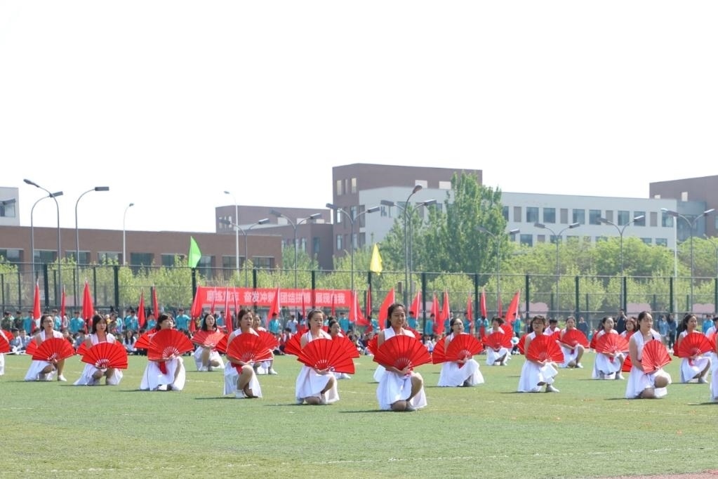 2019年4月26日,承德應(yīng)用技術(shù)職業(yè)學(xué)院學(xué)生在天津中德應(yīng)用技術(shù)大學(xué)運動會開幕式上表演。新華社發(fā)
