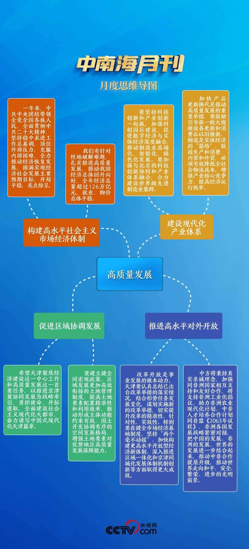 在同黨外人士共迎新春時(shí),總書(shū)記回顧我國(guó)一年來(lái)構(gòu)建高水平社會(huì)主義市場(chǎng)經(jīng)濟(jì)體制取得的突出亮點(diǎn);在全國(guó)先進(jìn)制造研發(fā)基地、環(huán)渤海地區(qū)的經(jīng)濟(jì)中心天津,總書(shū)記為建設(shè)現(xiàn)代化產(chǎn)業(yè)體系和促進(jìn)區(qū)域協(xié)調(diào)發(fā)展指明方向;在同塞拉利昂總統(tǒng)會(huì)談時(shí),習(xí)主席闡釋推進(jìn)高水平對(duì)外開(kāi)放的思路和舉措……全面推動(dòng)高質(zhì)量發(fā)展的理念貫穿始終。