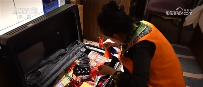 3月3日喬進(jìn)雙梅一到北京就忙著整理她特意帶來的一些彝族特色飾品。