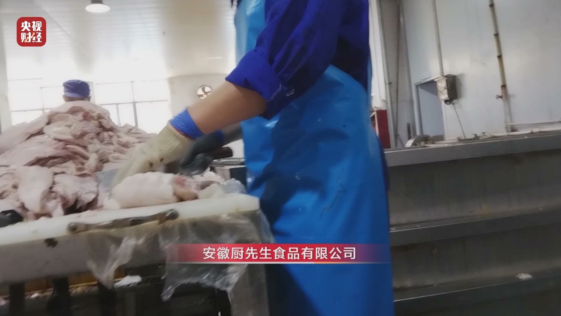 安徽廚先生食品有限公司 工作人員:還是會留一些腺體,上面不留一點腺體,底下紅肉就被修掉了。