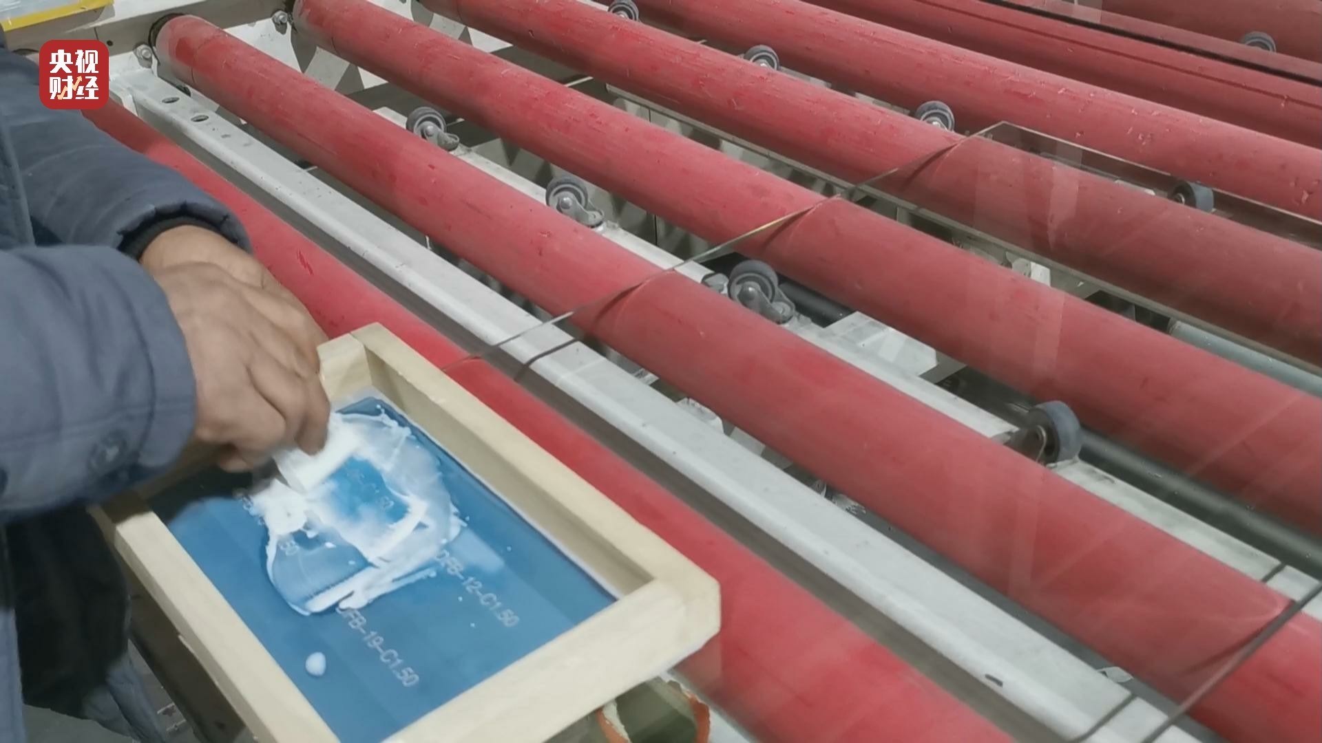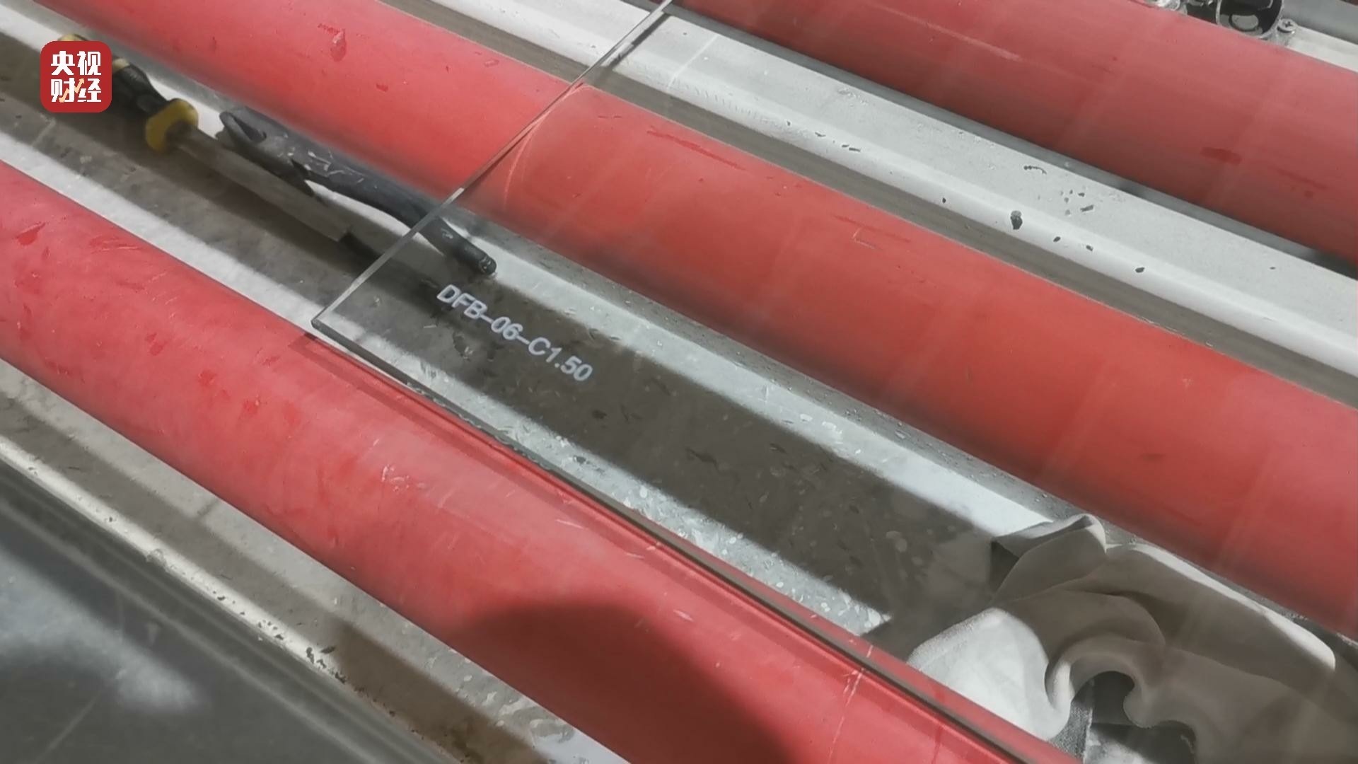但是記者看到,同時跟樣品玻璃一起鋼化的另一批玻璃,在生產(chǎn)線上也被打上了防火標(biāo)志,然而整個生產(chǎn)過程,記者并沒有看到給這些玻璃噴防火液以及晾干的工序。