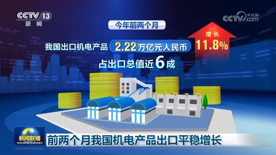 前兩個(gè)月我國(guó)機(jī)電產(chǎn)品出口平穩(wěn)增長(zhǎng)