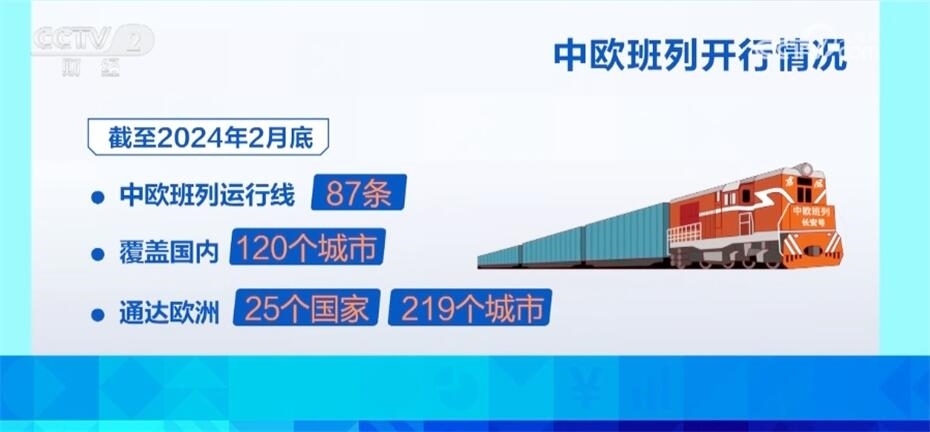 目前,全國鐵路直通快運班列開行數(shù)量已達到340條,其中,“班列+班輪”的鐵??炀€產(chǎn)品已實現(xiàn)對全國主要港口的全覆蓋,中歐班列運行線87條,覆蓋國內(nèi)120個城市,通達歐洲25個國家219個城市。