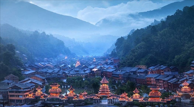 這里素有“侗鄉(xiāng)第一寨”的美譽(yù),2005年被《中國(guó)國(guó)家地理》評(píng)選為“中國(guó)最美的六大鄉(xiāng)村古鎮(zhèn)”之一。肇興侗寨四面環(huán)山,寨子建于山中盆地,兩條小溪匯成一條小河穿寨而過(guò),去了才能真切地感受到深山里的世外桃源。