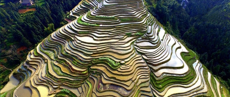 這里被譽(yù)為中國(guó)最好梯田之一,苗族是“稻飯魚(yú)羹”的民族,梯田中散落著苗鄉(xiāng)特有的吊腳樓。是苗族人世世代代留下的杰作。