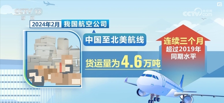 央視網(wǎng)消息:記者了解到,在國際客運(yùn)不斷恢復(fù)的同時,國際貨郵運(yùn)輸恢復(fù)水平也再創(chuàng)新高,2月,共完成貨郵運(yùn)輸量21.6萬噸,較2019年同期增長65.9%。