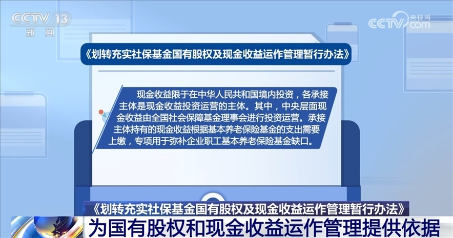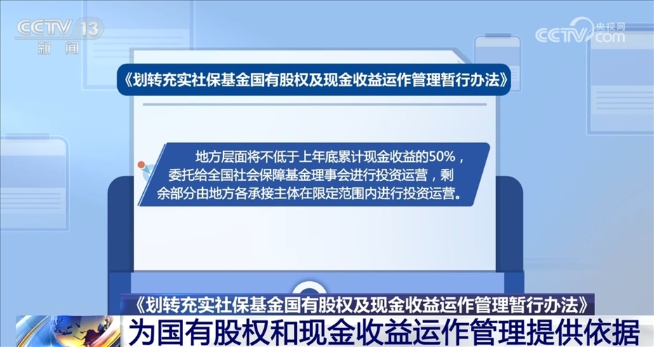 央視網(wǎng)消息:近日,財(cái)政部、人力資源社會(huì)保障部、國(guó)務(wù)院國(guó)資委三部門聯(lián)合印發(fā)了《劃轉(zhuǎn)充實(shí)社保基金國(guó)有股權(quán)及現(xiàn)金收益運(yùn)作管理暫行辦法》(以下簡(jiǎn)稱《辦法》)?!掇k法》為承接主體開展國(guó)有股權(quán)和現(xiàn)金收益運(yùn)作管理提供了依據(jù)。