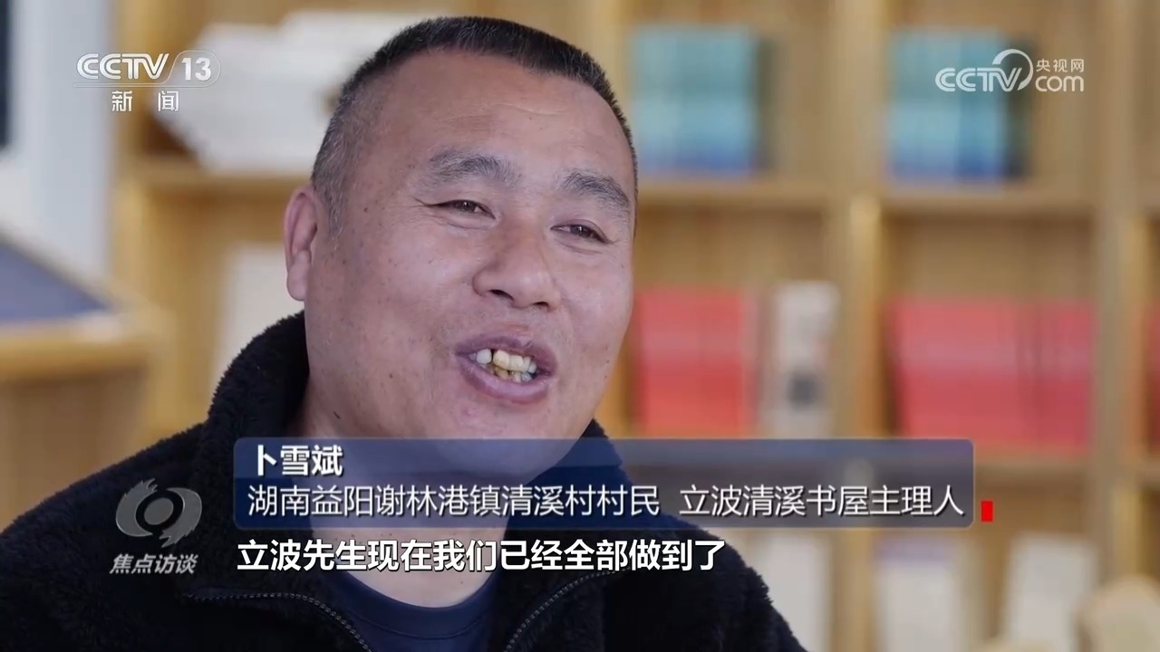 湖南益陽(yáng)謝林港鎮(zhèn)清溪村村民、立波清溪書屋主理人卜雪斌:“這個(gè)時(shí)間我記得清清楚楚,村里是2022年3月16日,第一次到我家里來(lái),宣傳書屋的構(gòu)想,3月19日做設(shè)計(jì)方案的就過來(lái)了,3月22日基本上就動(dòng)工了?!?/p>