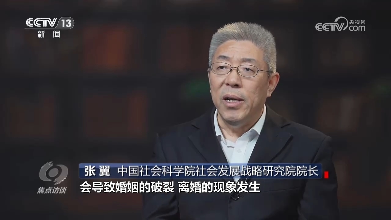 中國社科院社會發(fā)展戰(zhàn)略研究院院長張翼:“增加夫妻雙方的矛盾以后,會導(dǎo)致婚姻破裂、離婚現(xiàn)象發(fā)生,導(dǎo)致離婚率居高不下;第二,往往導(dǎo)致兩個親家之間互不往來,原來存在的家庭網(wǎng)斷裂了?!?
