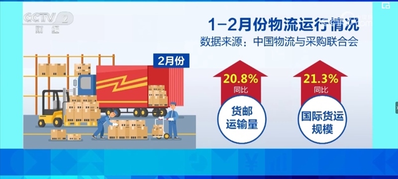 航空物流淡季不淡,2月份,貨郵運輸量同比增長20.8%,國際貨運規(guī)模同比增長21.3%。電商物流運行穩(wěn)中向好,1—2月份,中國電商物流指數(shù)平均值升至近年來的最高水平。