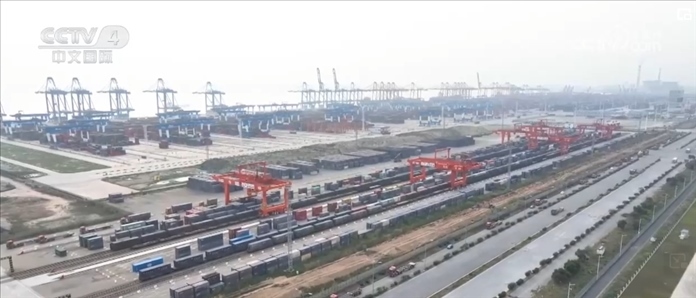 在新疆阿克蘇,一列又一列棉紗班列每周開(kāi)行駛往長(zhǎng)三角。以往零散發(fā)運(yùn)的棉紗有了固定“班次”,運(yùn)輸時(shí)間也從10到12天壓縮到了4天。