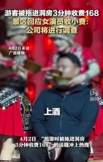 ·游客被拖進洞房3分鐘收費168元,景區(qū)回應:系女演員收小費。廣西陽朔文旅部門介入調(diào)查。