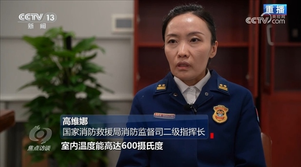 國家消防救援局消防監(jiān)督司二級指揮長高維娜:“30秒鐘就能達到燃燒狀態(tài),3分鐘火焰中心部位的溫度能達到1200攝氏度。如果是在室內(nèi),室內(nèi)溫度能高達600攝氏度,會產(chǎn)生大量有毒煙氣。目前,我們國家沒有專門針對電動自行車火災撲救的滅火藥劑。”