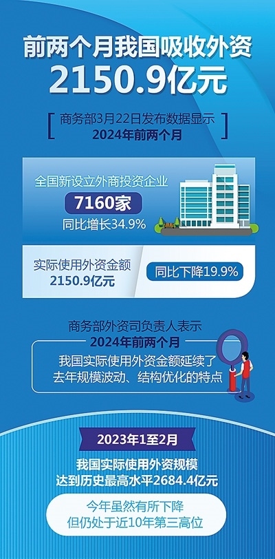 商務(wù)部數(shù)據(jù)顯示,今年1-2月,中國新設(shè)外資企業(yè)數(shù)量達7160家,同比增長34.9%。商務(wù)部外資司有關(guān)負責人表示,這一數(shù)字是近5年來的最高水平,顯示出跨國公司仍看好中國市場發(fā)展機遇,對華投資持續(xù)加碼。