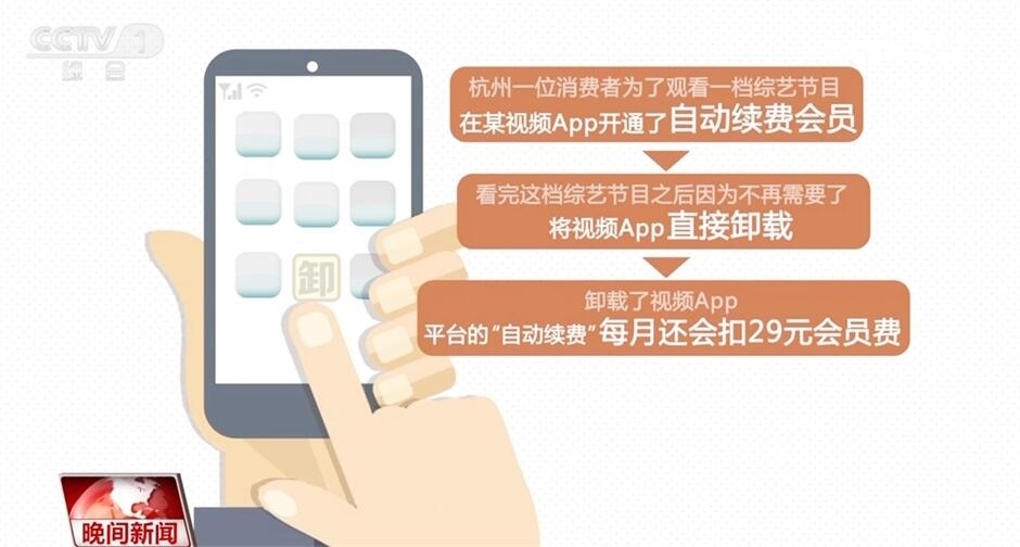 杭州一位消費者為了觀看一檔綜藝節(jié)目,在一家視頻App開通了自動續(xù)費會員,之后便直接將視頻App卸載。然而,平臺的“自動續(xù)費”并沒有終止,每月會費照扣。