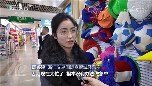 5%是今年一季度我國的進(jìn)出口增速。外貿(mào)開局有力、起勢良好。在浙江義烏國際商貿(mào)城,你能直觀感受到貿(mào)易回暖的跡象。7月份,即將在巴黎舉辦的奧運(yùn)會給義烏帶來了商機(jī),商家已經(jīng)提前接到了不少訂單。