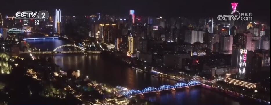 游船正在經(jīng)過(guò)被稱為“天下黃河第一橋”的中山橋,作為來(lái)蘭州的必打卡地之一,四月以來(lái),這里的日均游客數(shù)量超過(guò)3.5萬(wàn)人次,從空中俯瞰,璀璨的霓虹燈讓中山橋看上去就像一條威武的巨龍橫臥在黃河之上。每當(dāng)游輪經(jīng)過(guò)的時(shí)候,橋上的人和船上的人都會(huì)揮手互動(dòng),這樣的善意和友好,就是你來(lái)到這里能夠感受的城市溫度。