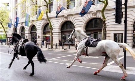 ·現(xiàn)場一片混亂!英國皇家騎兵隊馬匹失控在街頭狂奔。