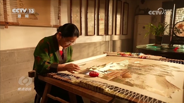 盧建英:“當(dāng)時(shí)我在繡一幅《桃花太平鳥(niǎo)圖》,習(xí)近平總書(shū)記走到了我的繃架前。他說(shuō)你好,很親切,很和藹,看得非常仔細(xì)。他說(shuō)中華文化的傳承力有多強(qiáng),通過(guò)這個(gè)蘇繡可以看出來(lái),像這樣的功夫充分體現(xiàn)出中國(guó)人的韌性、耐心和定力,這是中華民族精神的一部分,能得到總書(shū)記的認(rèn)可,真的是倍感榮耀?!?/p>