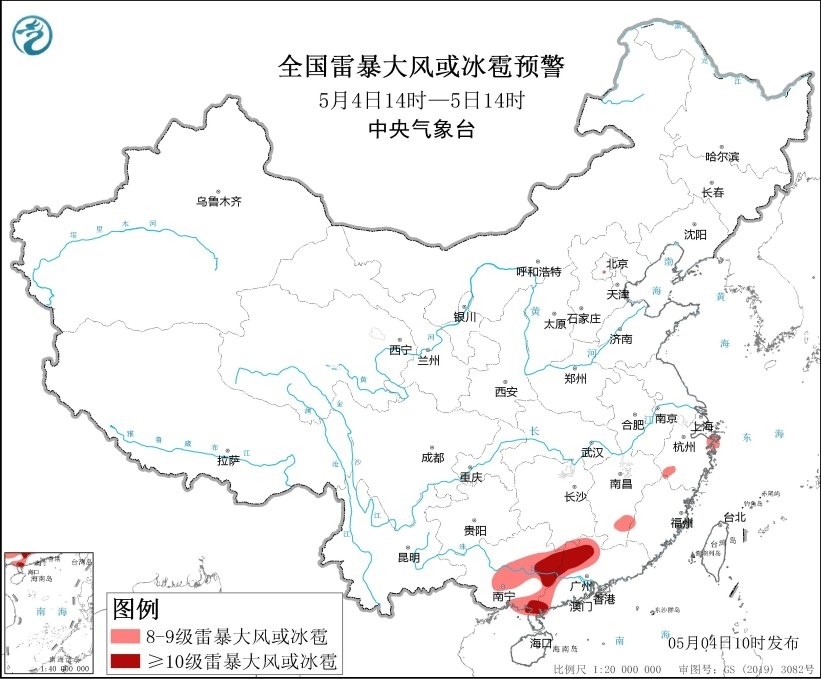 中央氣象臺(tái)5月4日10時(shí)繼續(xù)發(fā)布強(qiáng)對(duì)流天氣藍(lán)色預(yù)警