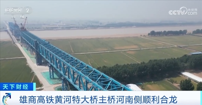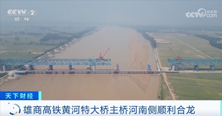 央視網(wǎng)消息:雄商高鐵是京雄商高鐵的一段,連接河北省雄安新區(qū)和河南商丘。5月18日,雄商高鐵黃河特大橋河南側(cè)的鋼桁梁架設(shè)施工全部完成,這標(biāo)志著主橋河南側(cè)已經(jīng)順利合龍。截至目前,全橋鋼桁梁架設(shè)的進度超過了87%,預(yù)計主橋全橋7月份合龍。