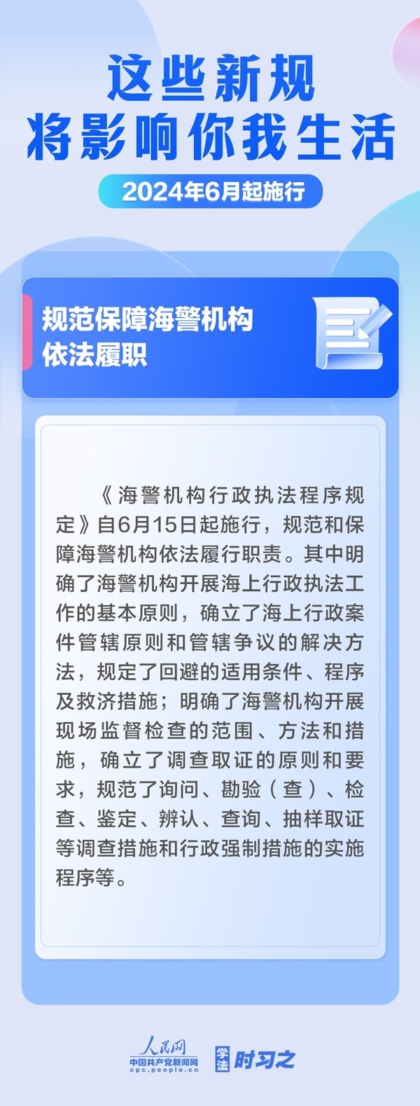 ? ? 保障糧食有效供給;確立生態(tài)保護(hù)補(bǔ)償基本制度規(guī)則;規(guī)范保障海警機(jī)構(gòu)依法履職……6月起,這些新規(guī)施行,將影響你我生活。