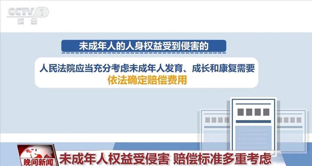 《意見》指出,未成年人的人身權(quán)益受到侵害的,人民法院應(yīng)當(dāng)充分考慮未成年人發(fā)育、成長(zhǎng)和康復(fù)需要,依法確定賠償費(fèi)用。