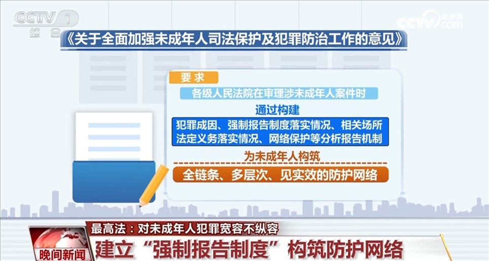 此外,《意見》還要求各級(jí)人民法院在審理涉未成年人案件時(shí)通過構(gòu)建犯罪成因、強(qiáng)制報(bào)告制度落實(shí)情況、相關(guān)場(chǎng)所法定義務(wù)落實(shí)情況、網(wǎng)絡(luò)保護(hù)等分析報(bào)告機(jī)制,為未成年人構(gòu)筑全鏈條、多層次、見實(shí)效的防護(hù)網(wǎng)絡(luò)。