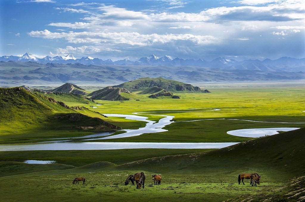 位于天山南麓的巴音布魯克既是中國僅次于內(nèi)蒙古鄂爾多斯的第二大草原,又是中國最大的高山草原,巴音布魯克草原共有大小13處泉水,7個湖泊,以及20條河流。蜿蜒在草原上的開都河素有“九曲十八彎”的美稱。