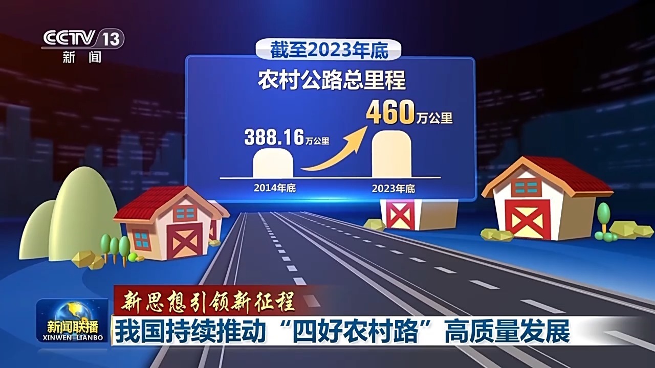 十年來,農(nóng)村公路取得歷史性成就。累計投入農(nóng)村公路建設(shè)資金達4.2萬億元,新改建農(nóng)村公路約250萬公里,截至2023年底,農(nóng)村公路總里程從2014年底的388.16萬公里增長到了460萬公里,農(nóng)村公路覆蓋范圍、通達深度、管養(yǎng)水平、服務(wù)能力和質(zhì)量安全顯著提高。