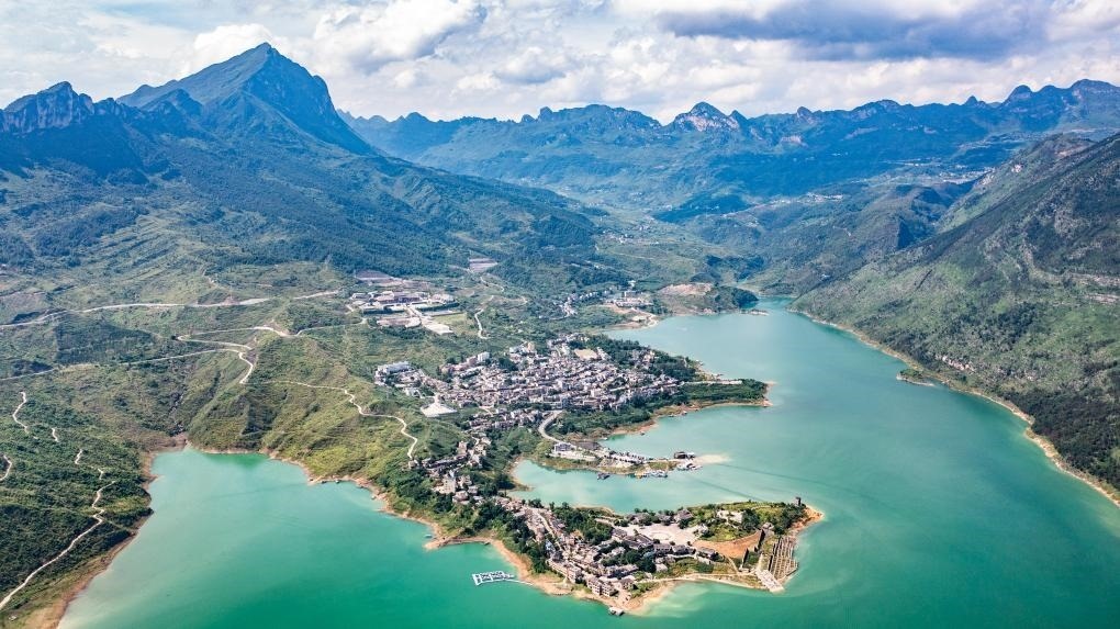 2024年7月10日拍攝的六盤水市六枝特區(qū)牂牁江風(fēng)景名勝區(qū)風(fēng)光(無(wú)人機(jī)照片)。新華社記者 陶亮 攝