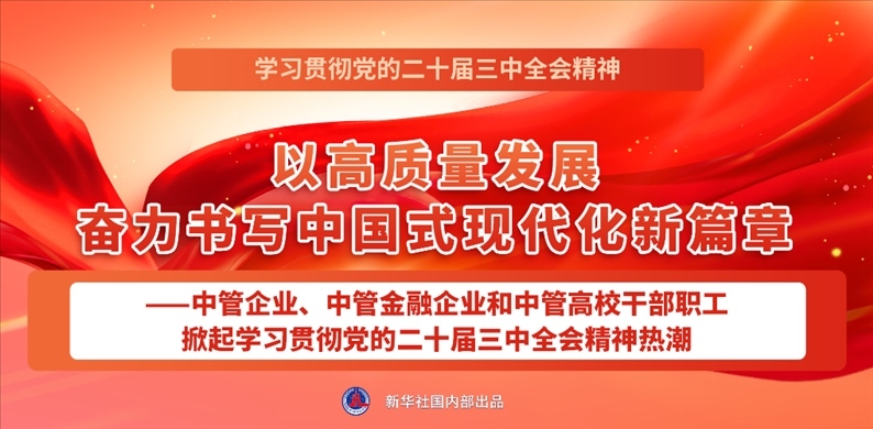 點擊標題看詳情:以高質(zhì)量發(fā)展奮力書寫中國式現(xiàn)代化新篇章——中管企業(yè)、中管金融企業(yè)和中管高校干部職工掀起學(xué)習(xí)貫徹黨的二十屆三中全會精神熱潮