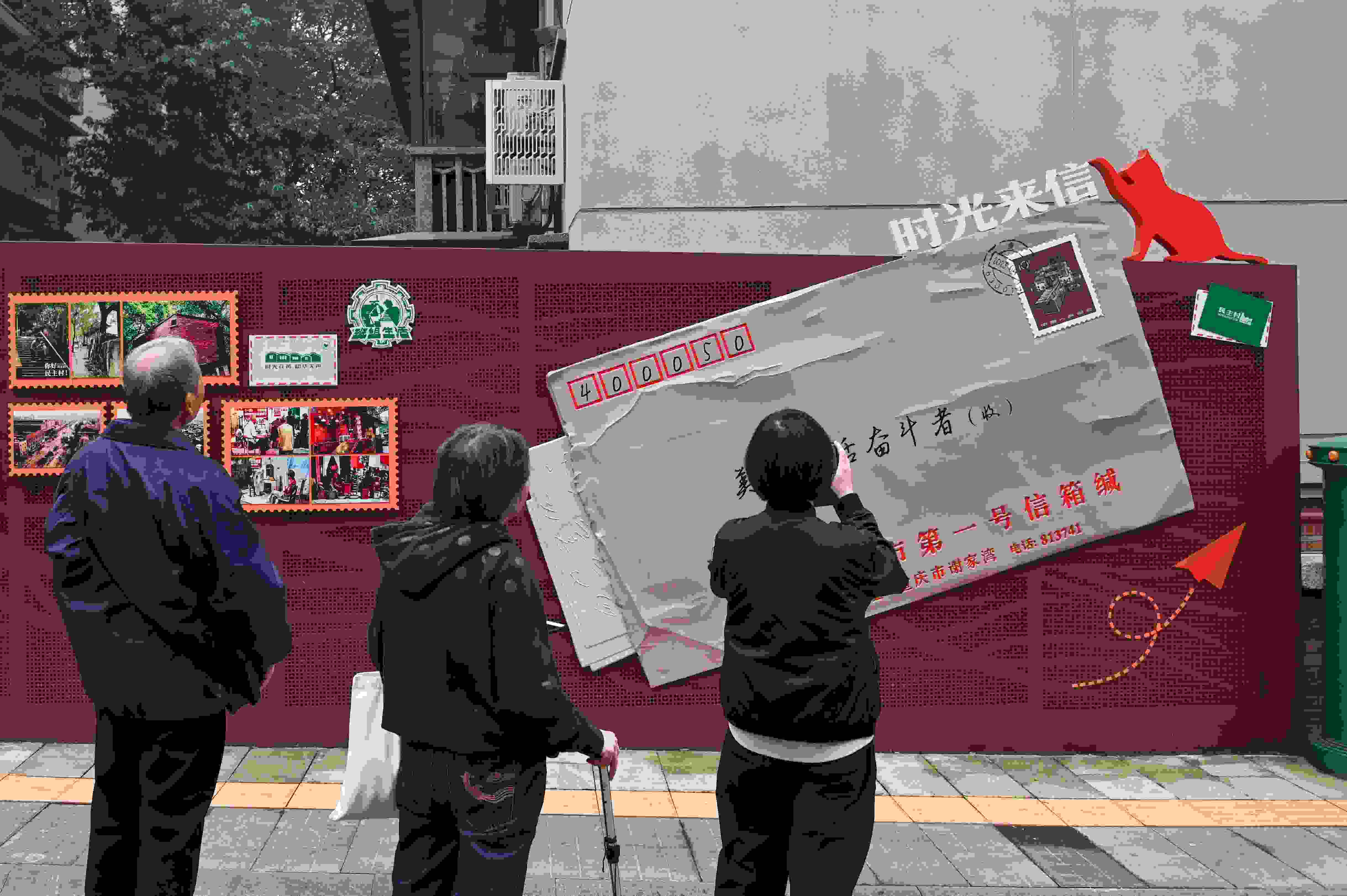 在重慶市九龍坡區(qū)民主村社區(qū),一封寄給“美好生活奮斗者”的巨大信封,幾乎鋪滿一面紅色的墻。市井煙火氣與新潮現(xiàn)代的時尚范兒融合交織,讓這里成為新晉網(wǎng)紅打卡地。