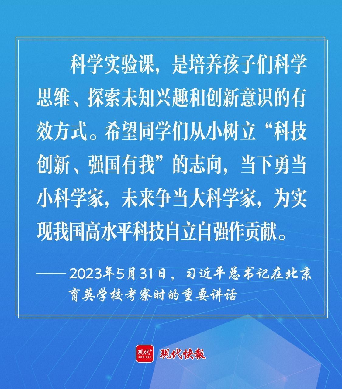 2023年5月,習(xí)近平總書記在北京育英學(xué)??疾鞎r強調(diào),希望同學(xué)們從小樹立“科技創(chuàng)新、強國有我”的志向,當(dāng)下勇當(dāng)小科學(xué)家,未來爭當(dāng)大科學(xué)家,為實現(xiàn)我國高水平科技自立自強作貢獻。