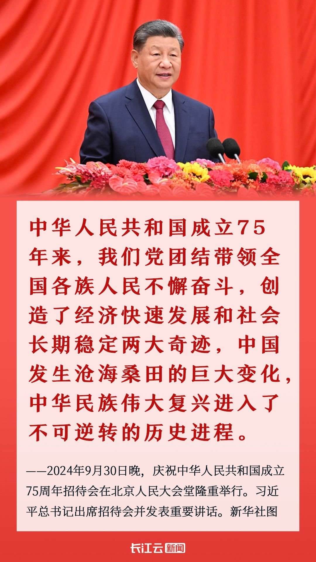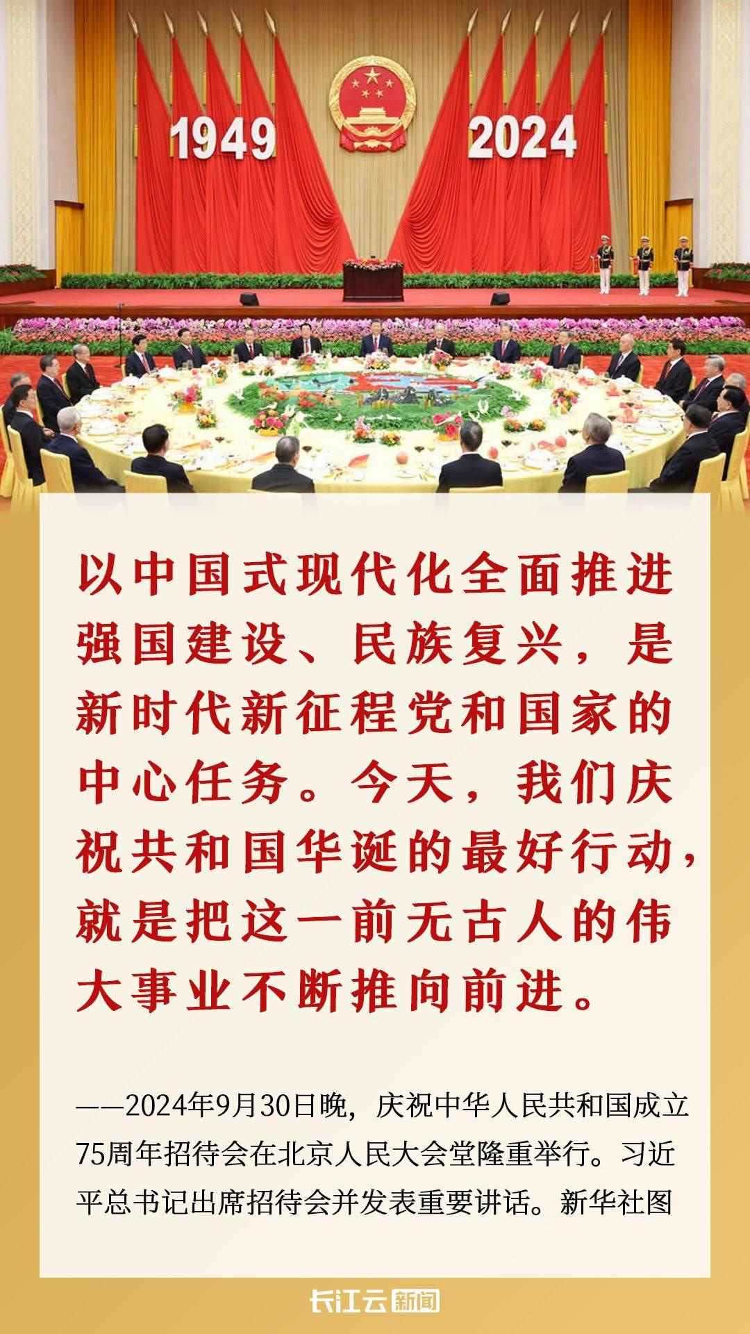 習(xí)近平總書(shū)記在慶祝中華人民共和國(guó)成立75周年招待會(huì)上講話時(shí)指出,“以中國(guó)式現(xiàn)代化全面推進(jìn)強(qiáng)國(guó)建設(shè)、民族復(fù)興,是新時(shí)代新征程黨和國(guó)家的中心任務(wù)。今天,我們慶祝共和國(guó)華誕的最好行動(dòng),就是把這一前無(wú)古人的偉大事業(yè)不斷推向前進(jìn)”。