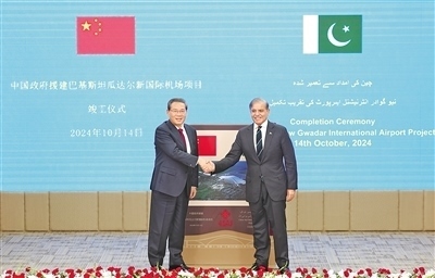本報伊斯蘭堡10月14日電 (記者陳尚文、程是頡)當?shù)貢r間10月14日,國務(wù)院總理李強在巴基斯坦總理府同巴基斯坦總理夏巴茲共同出席瓜達爾新國際機場項目竣工儀式。